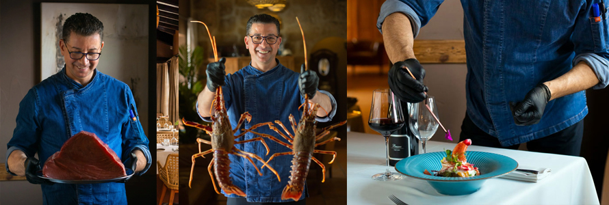 En el interior, cada rincón cuenta una historia. Madera noble, piedra tosca y una iluminación tenue se combinan para crear un ambiente íntimo y sofisticado. Es en este marco donde Valentín, el jefe de sala, da vida al lugar con su calidez y profesionalidad. Su presencia va más allá de un simple servicio: es el anfitrión perfecto, siempre dispuesto a compartir una anécdota y a hacer que cada cliente se sienta único.